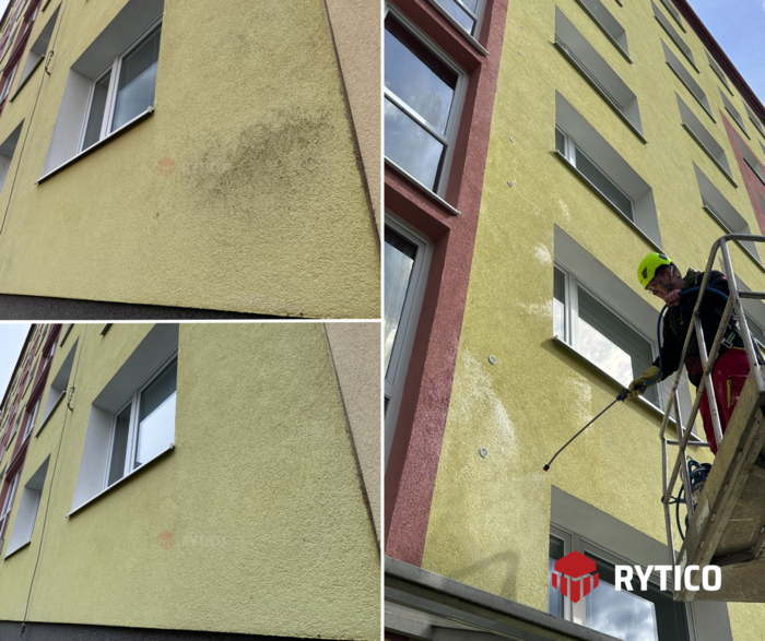 Tento bytový dům ve Žlutické ulici v Plzni je jedním z příkladů, kdy se předsednictvo SVJ o svůj dům opravdu stará. Fasáda nebyla ve špatném stavu, nicméně již vykazovala známky organického napadení, a to zvláště nad okny. Fasáda byla nejprve očištěna od tohoto napadení, následně jsme na fasádu aplikovali ochrannou impregnaci.