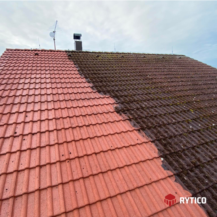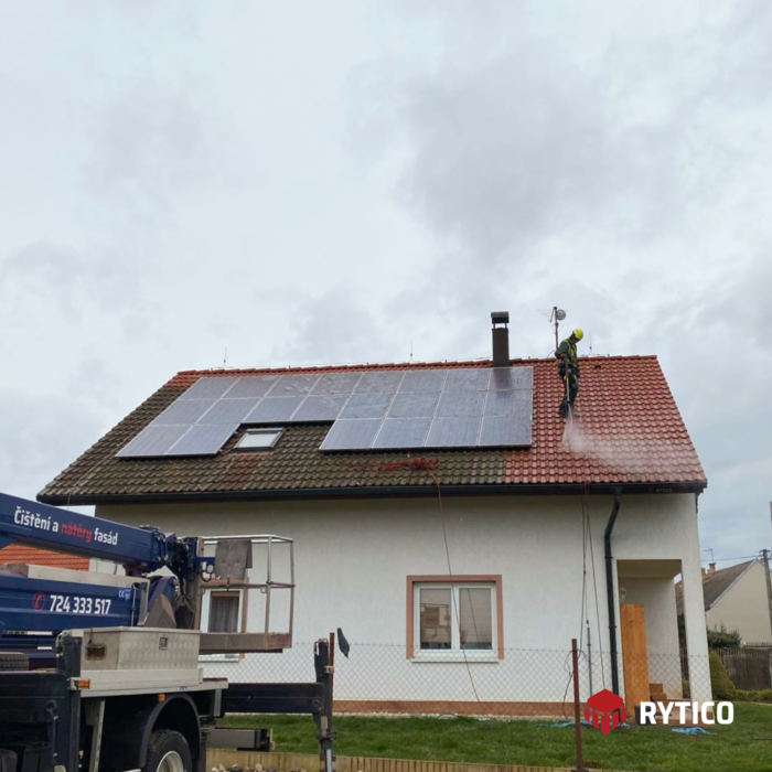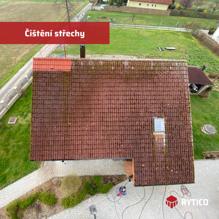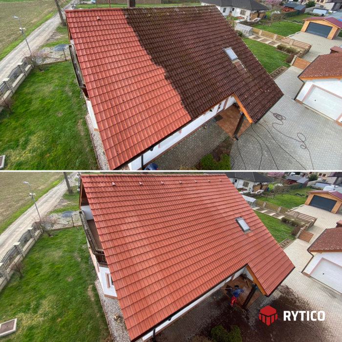 Na jaře 2024 jsme na tomto rodinném domku provedli důkladné čištění střechy, která byla značně znečištěná. Naším zásahem jsme nejen zabránili rychlejší degradaci střešní krytiny, ale také jsme obnovili její důstojný vzhled.