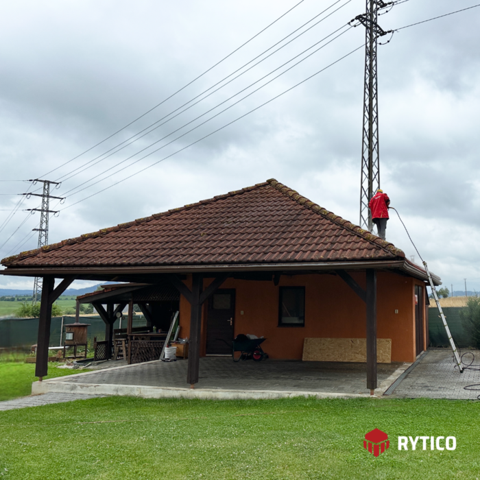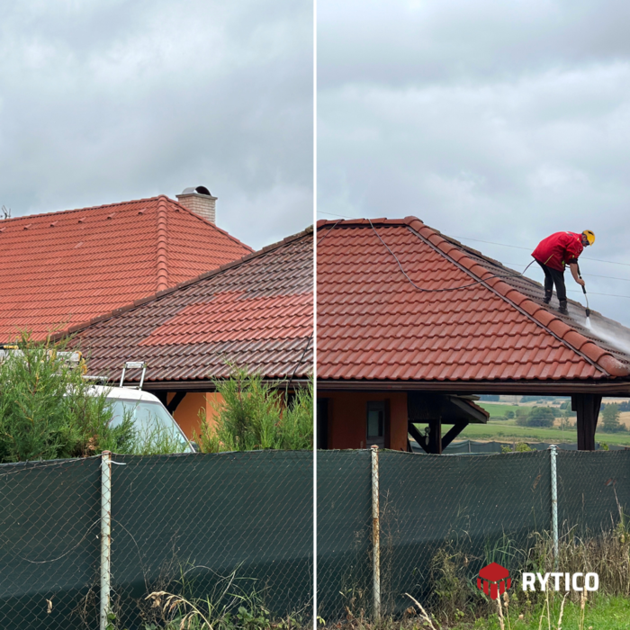Na přelomu září a října jsme se pustili do čištění střechy zahradního domku s garáží, která si po letech užívání zasloužila kvalitní péči. Po našem zásahu vypadá střecha domku jako nová, přičemž prodloužili její životnost.
