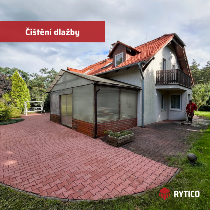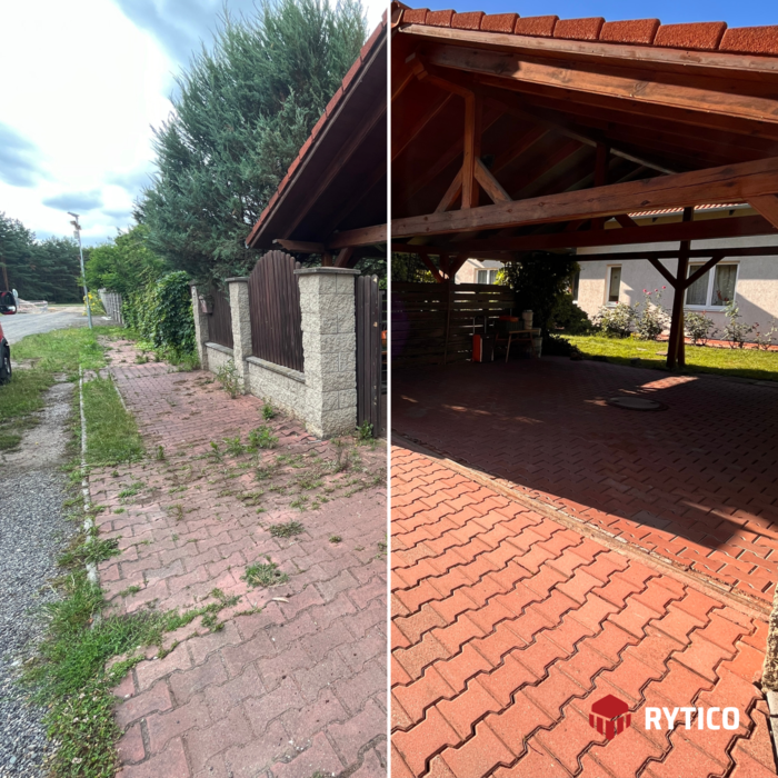 Jednou z našich posledních realizací bylo čištění zámkové dlažby, která byla velmi silně zarostlá a zanesená nečistotami. Náš tým provedl tlakové čištění, čímž byl obnoven vzhled dlažby do původního stavu. Výsledkem realizace je výrazné zlepšení celkového vzhledu exteriéru nemovitosti.