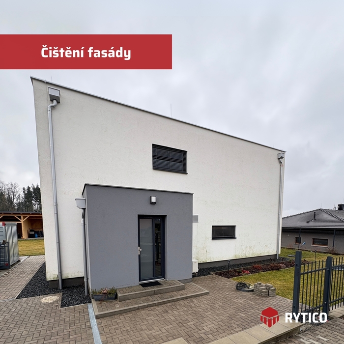 V březnu 2025 jsme provedli čištění fasády rodinného domu u Domažlic. Odstranili jsme atmosférické nečistoty, řasy a další usazeniny, které narušovaly povrch omítky. Pro zvýšení odolnosti jsme aplikovali nano impregnaci, která chrání fasádu před dalším znečištěním.